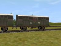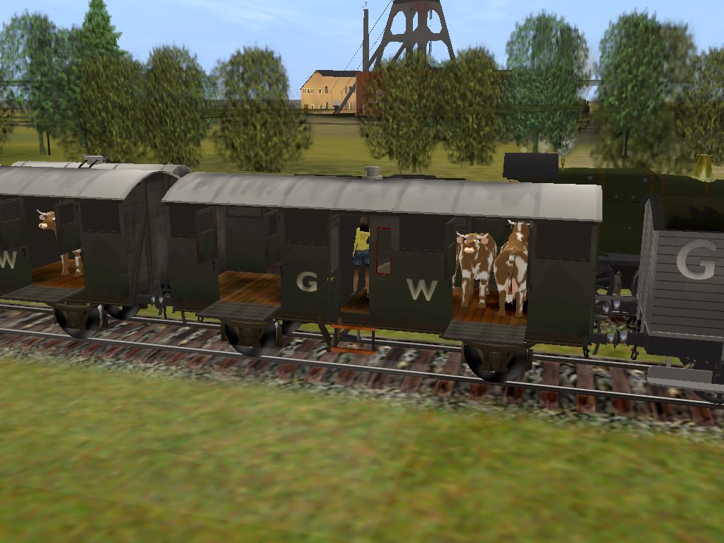 GREAT WESTERN RAILWAY Cattle Wagon and Cow Loads At the turn of the last century, the GWR had considerable distribution Services of cattle accross the British Isles, for milk production and beef. I have endeavoured to capture that moment in time for the true TRAINZ enthusiast by providing the standard GWR Cattle wagon. The pack contins 2 different GWR Cattle wagons, lightly weathered and heavily weathered, with loads of 2, 4, 6 and 8 animated cows and 2 herders. Herder and Cattle loading doors are fully animated, as are the cattle and require TRS2006 or TRS2004 SP2 Industry enabled. - click on pic to see larger images - All items, the GWR Cattle Wagons, loads of 2, 4, 6 or 8 animated cows, with12 months warranty, including fixes, updates etc. is $5 US (hay not included) - to Order, click on the PayPal logo below, and tell us which items you require -