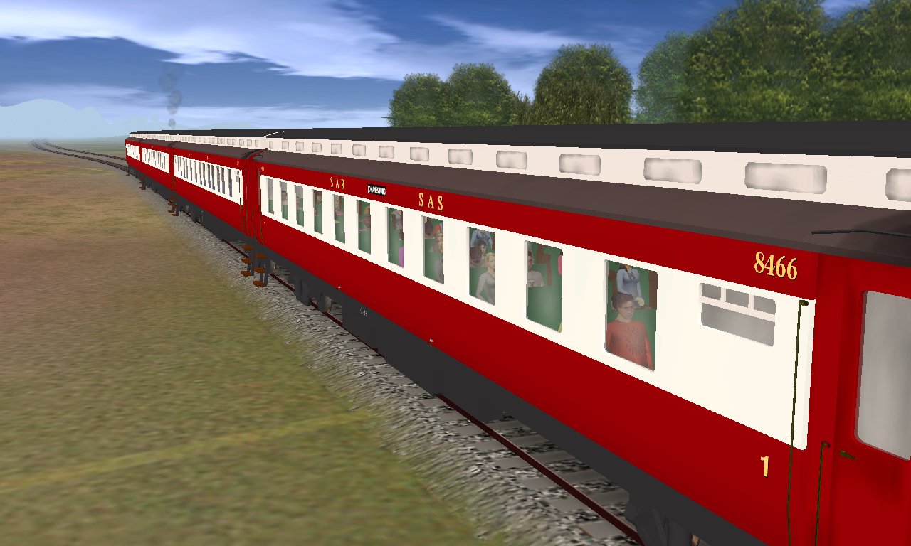 As South Africa has a large number of cities, these coaches were designed to carry workers between cities and towns. These coaches were built in the '20's, but were so successful for mainline transport, were in use until the 70's, and indeed several are still used for tourist routes. These models are on 3ft6 bogies to suit the track supplied. All are passenger enabled, with opening doors, and with inside views to get the feeling of travelling aboard these coaches whilst viewing the South African scenery.